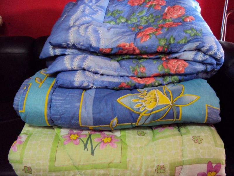 - постельные принадлежности: матрацы (ватные рв, из ППУ, пружинные), подушки (синтепон, холлофайбер, пух-перо), одеяла (синтепон, холлофайбер, полушерстяные), комплекты постельного белья (КПБ 1,5 сп. поликоттон, бязь), покрывала;